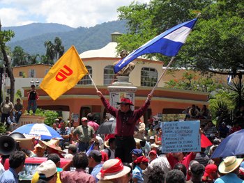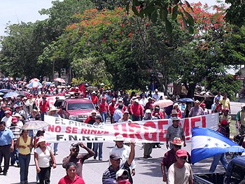 Having been there and spoken with many participants and other people in San Pedro, I feel comfortable saying that, contrary to what can be gleaned by most news outlets, the protesters who support Zelaya and the referendum do not simply want to create disorder—they want to peacefully express their political views in seeking a peaceful resolution to the crisis. These protesters are not people paid by Hugo Chavez (or anyone else), and are certainly not necessarily “socialists” in the strong sense of the word—they are simply the workers, teachers, laborers, farmers, lawyers, and many others of Honduras who believe their president was illegally removed, and who wish to express this belief through collective action. There may be legitimate disagreement about the legality of what happened with Zelaya´s removal, and about the best course of action going forward, but to the disinterested observer it is clear that these protests are simply collective action to express cogent, legitimate political demands. They are Hondurans expressing views about their government, and about their constitution.
